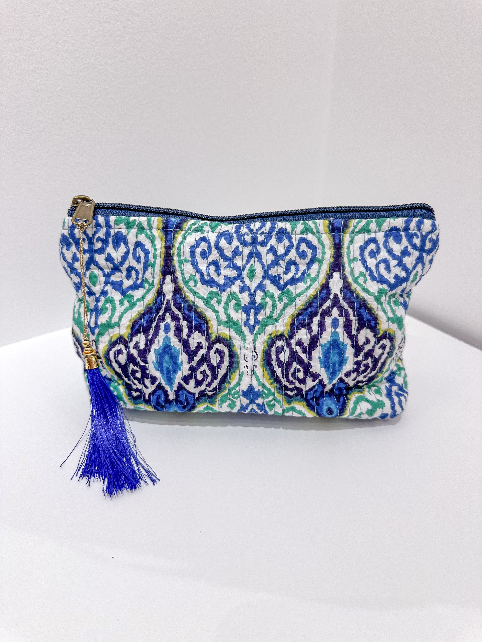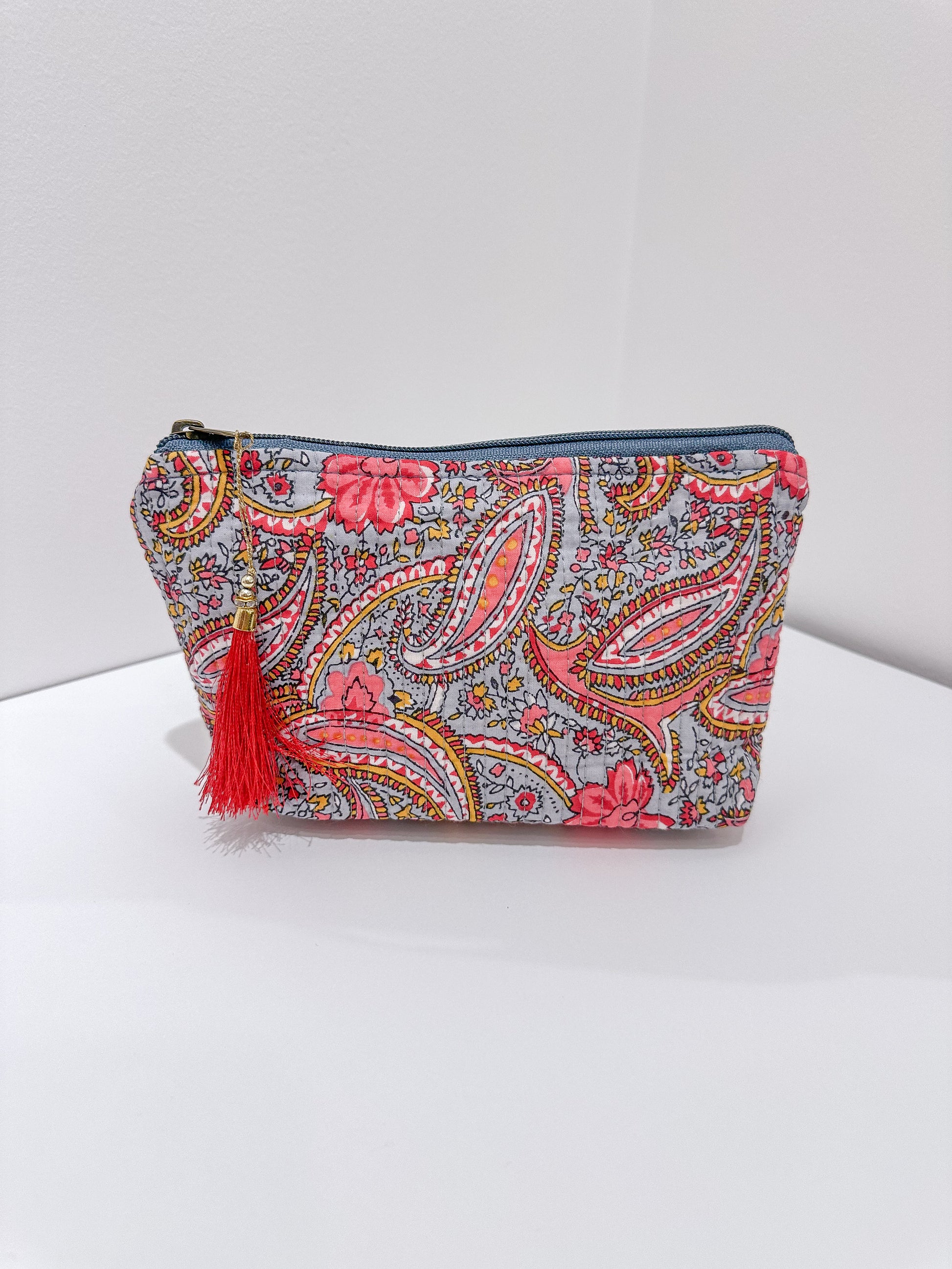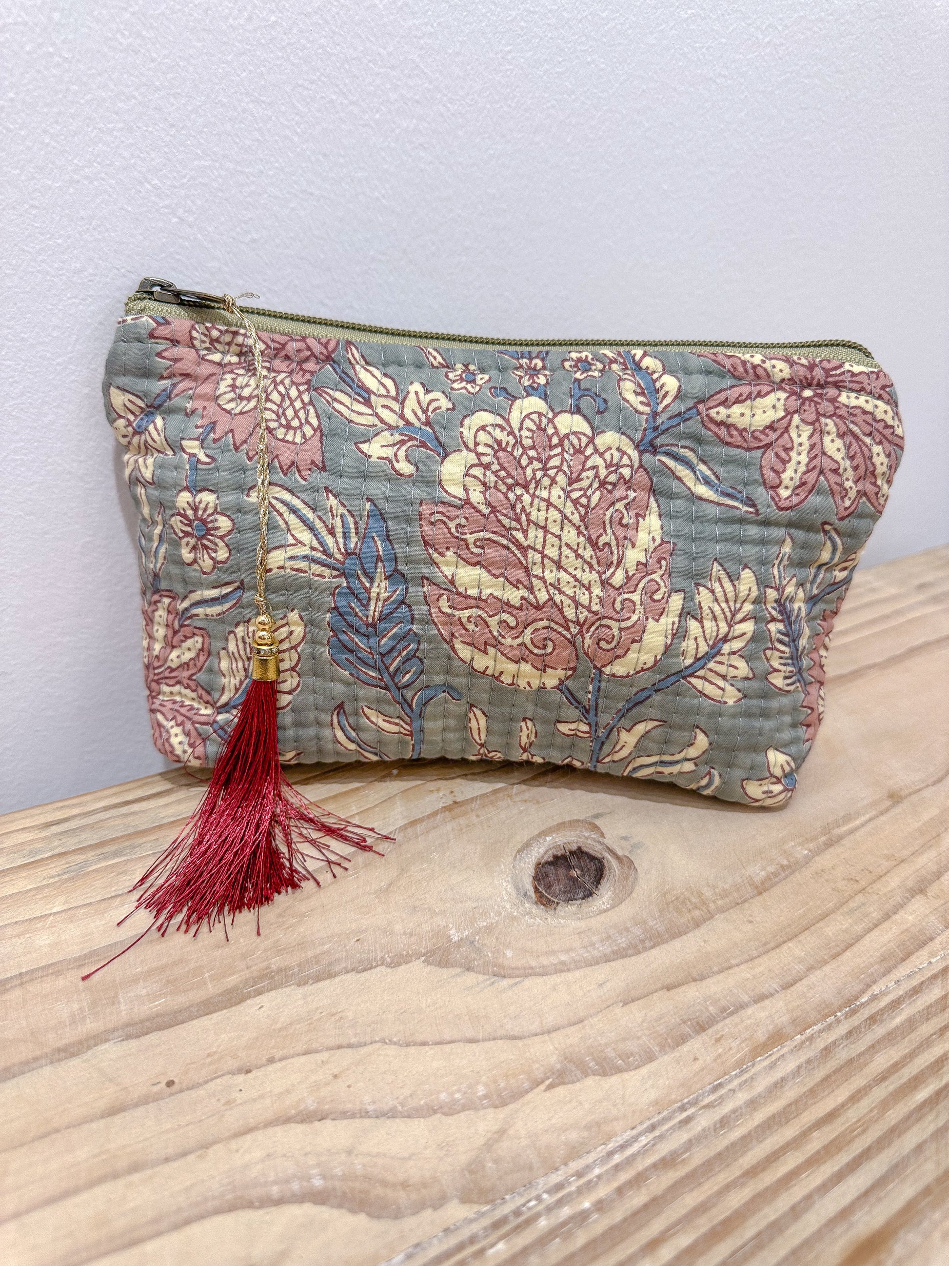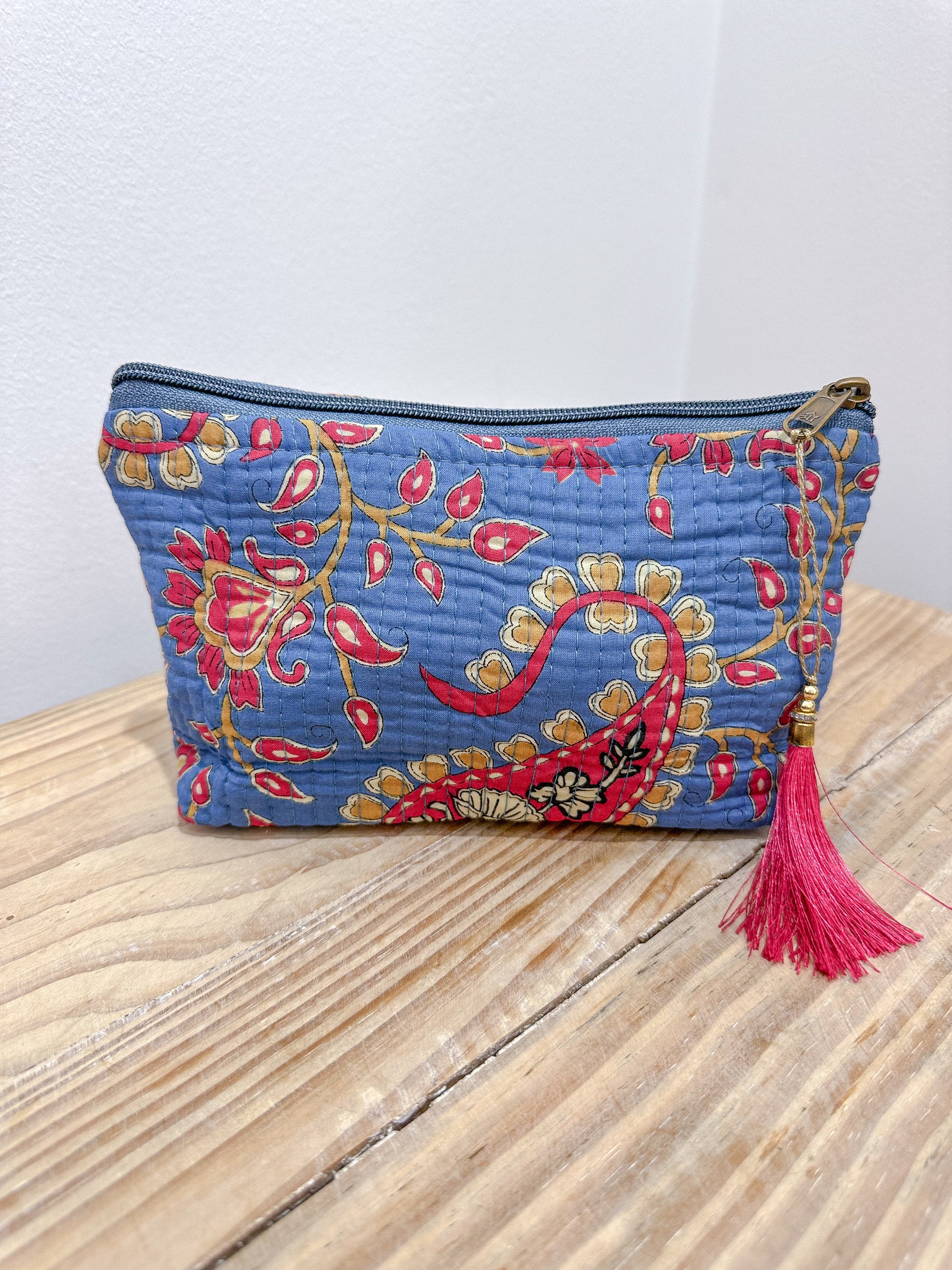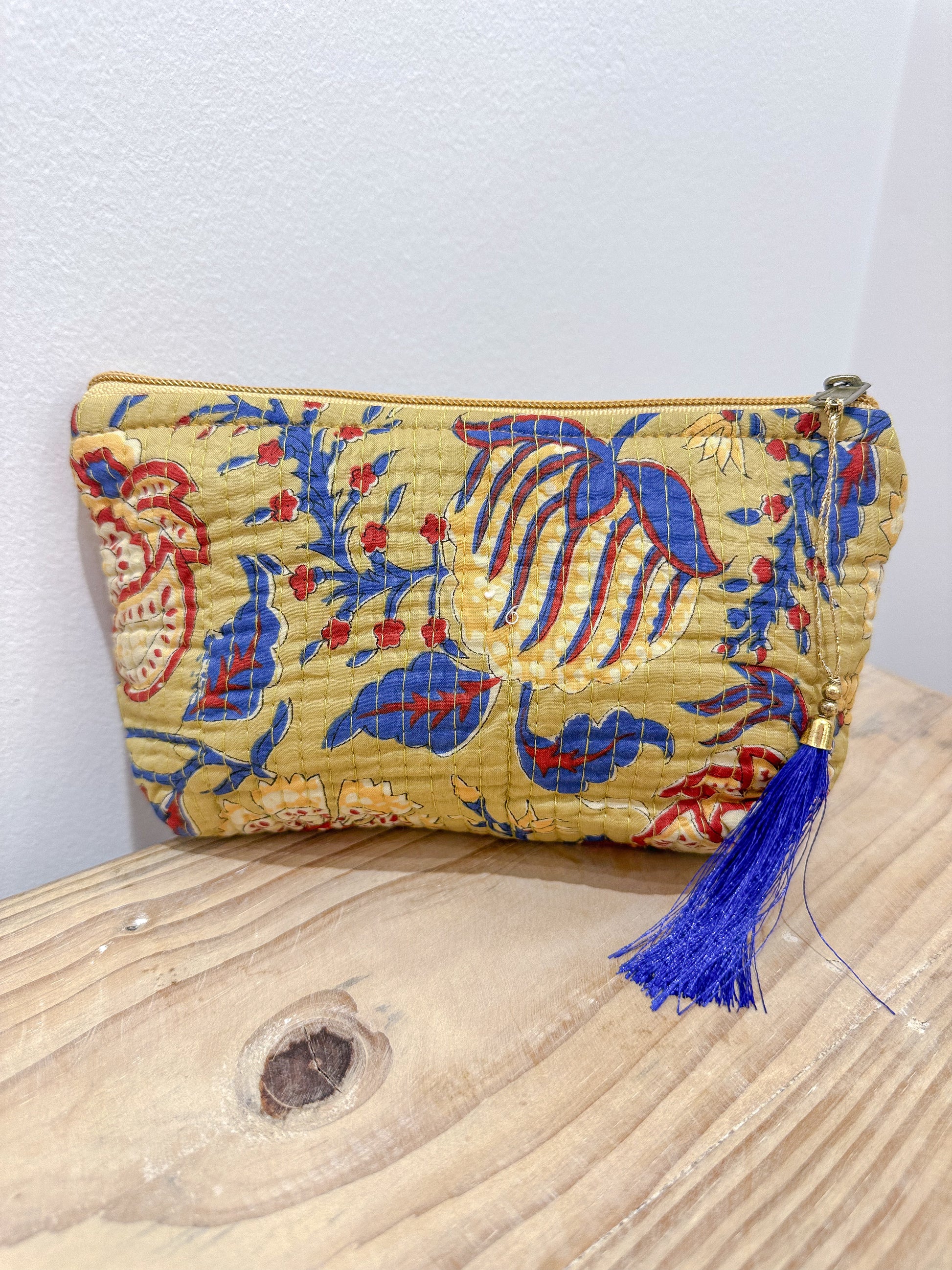 Dale un toque de encanto étnico a tu día a día con nuestro neceser con forma de trapecio y estampado de la India. Hecho a mano y con diseños únicos, reflejo de la autenticidad artesanal.