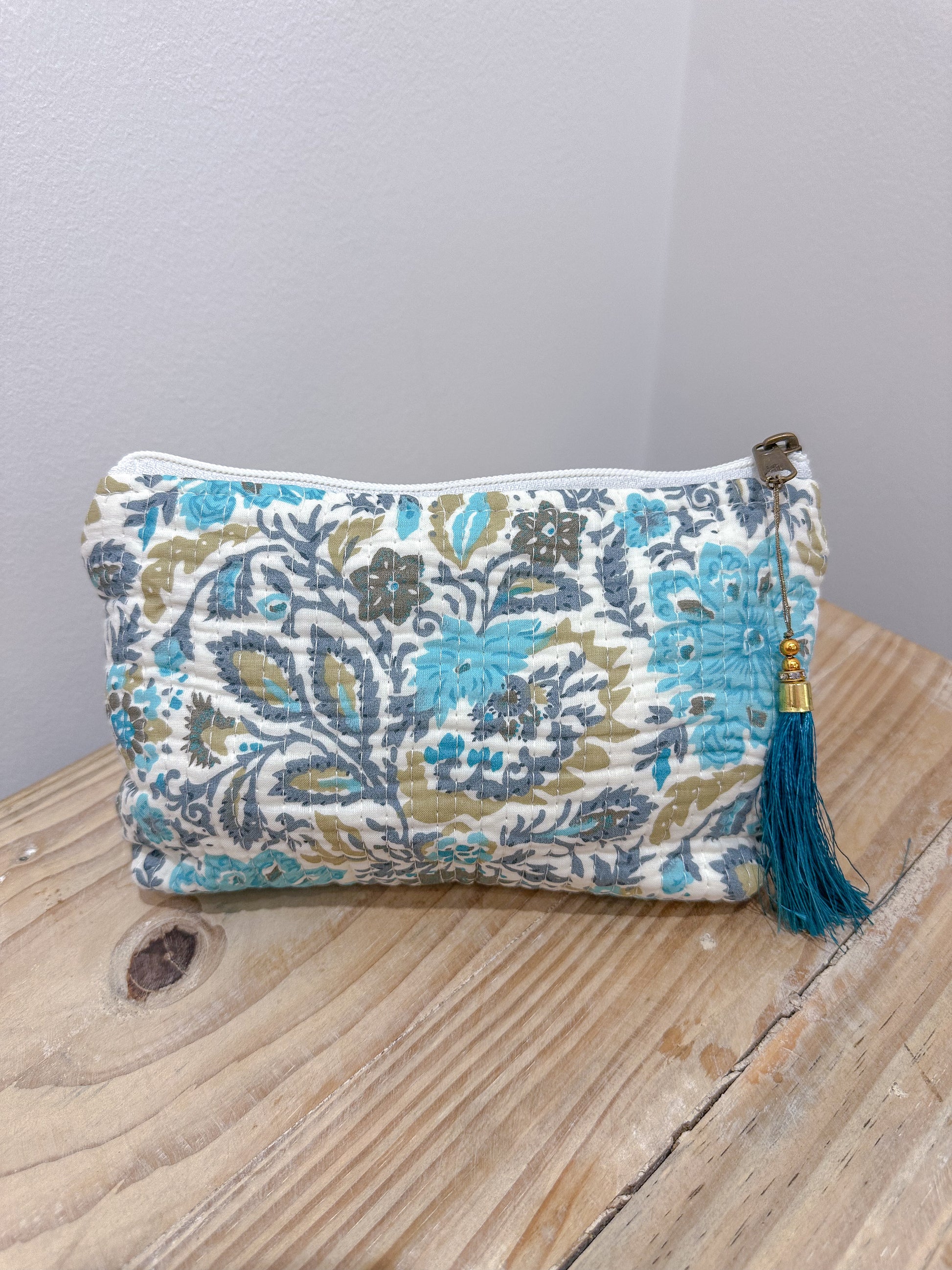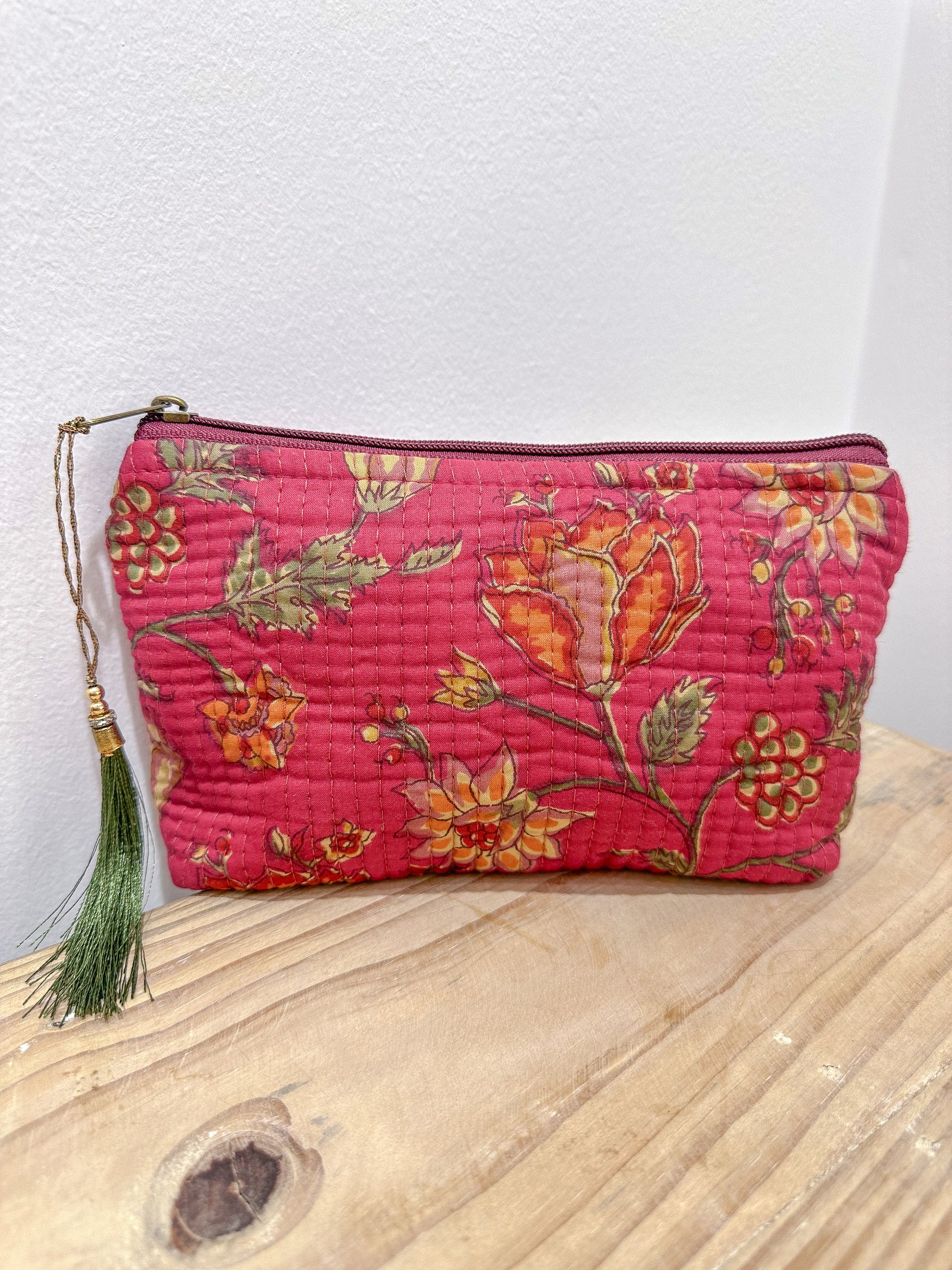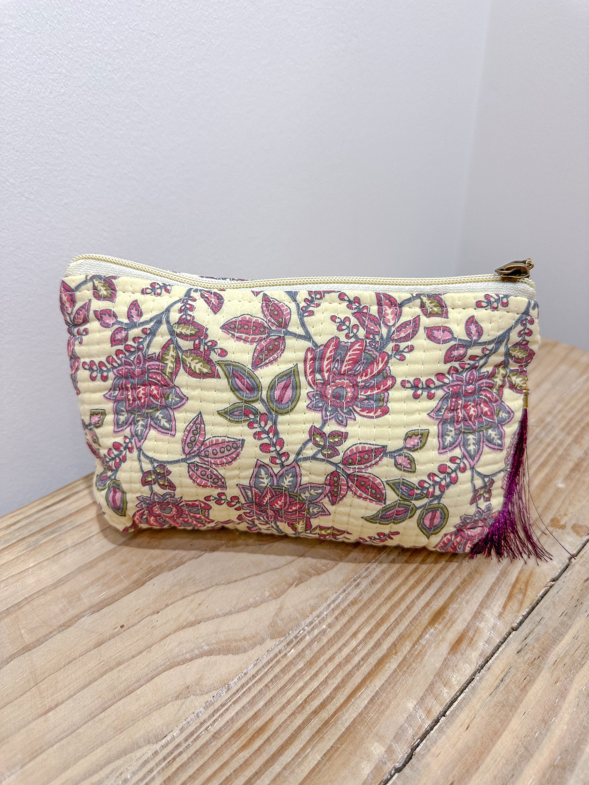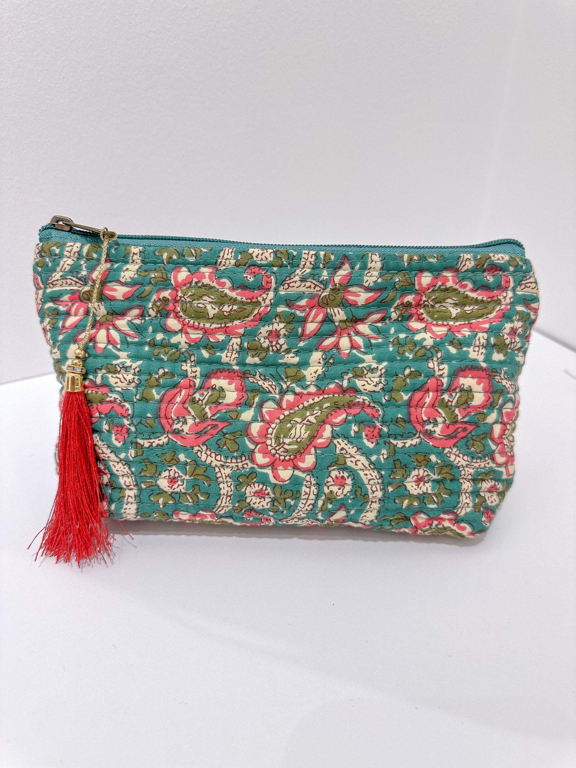 Dale un toque de encanto étnico a tu día a día con nuestro neceser con forma de trapecio y estampado de la India. Hecho a mano y con diseños únicos, reflejo de la autenticidad artesanal.