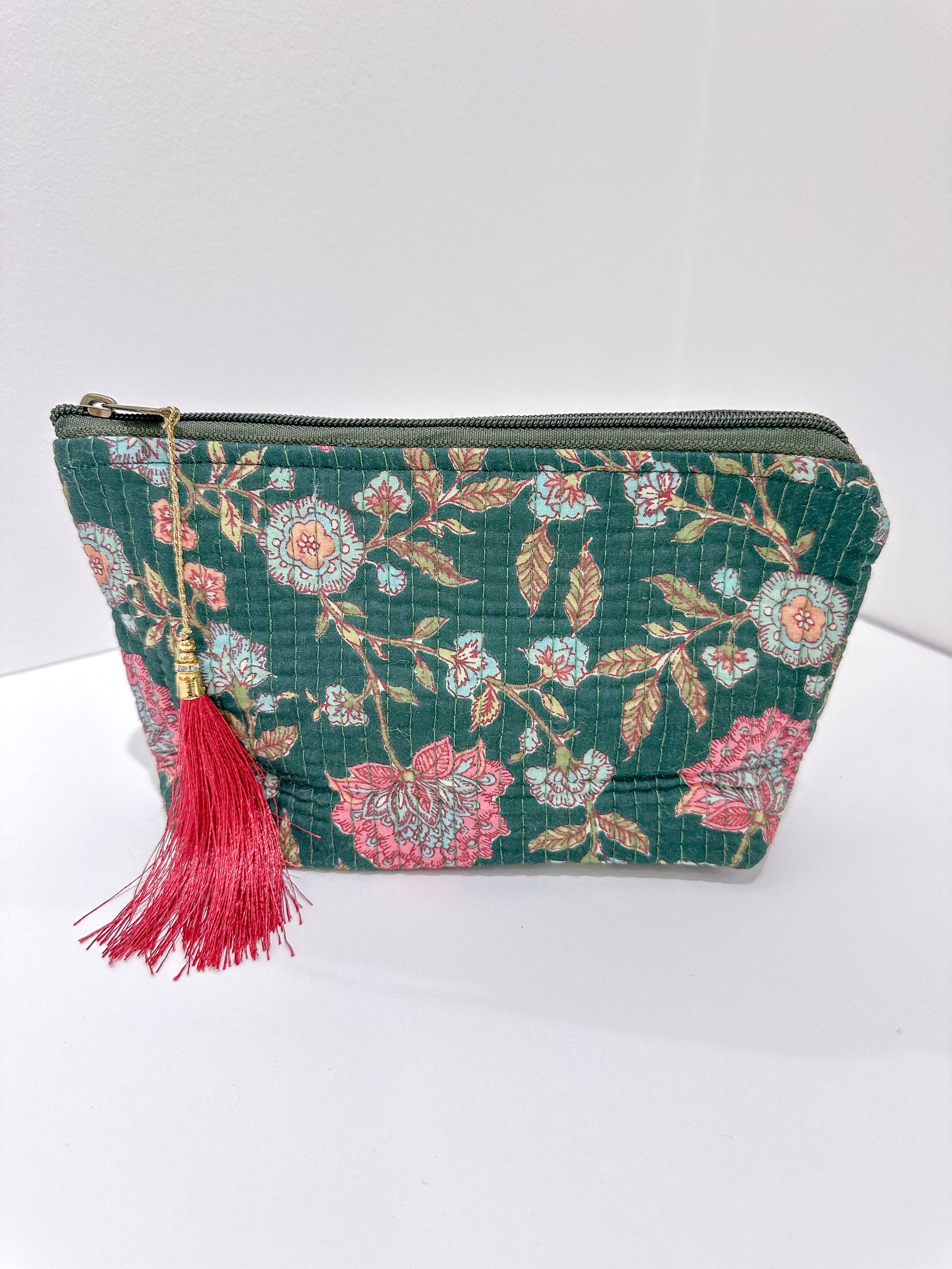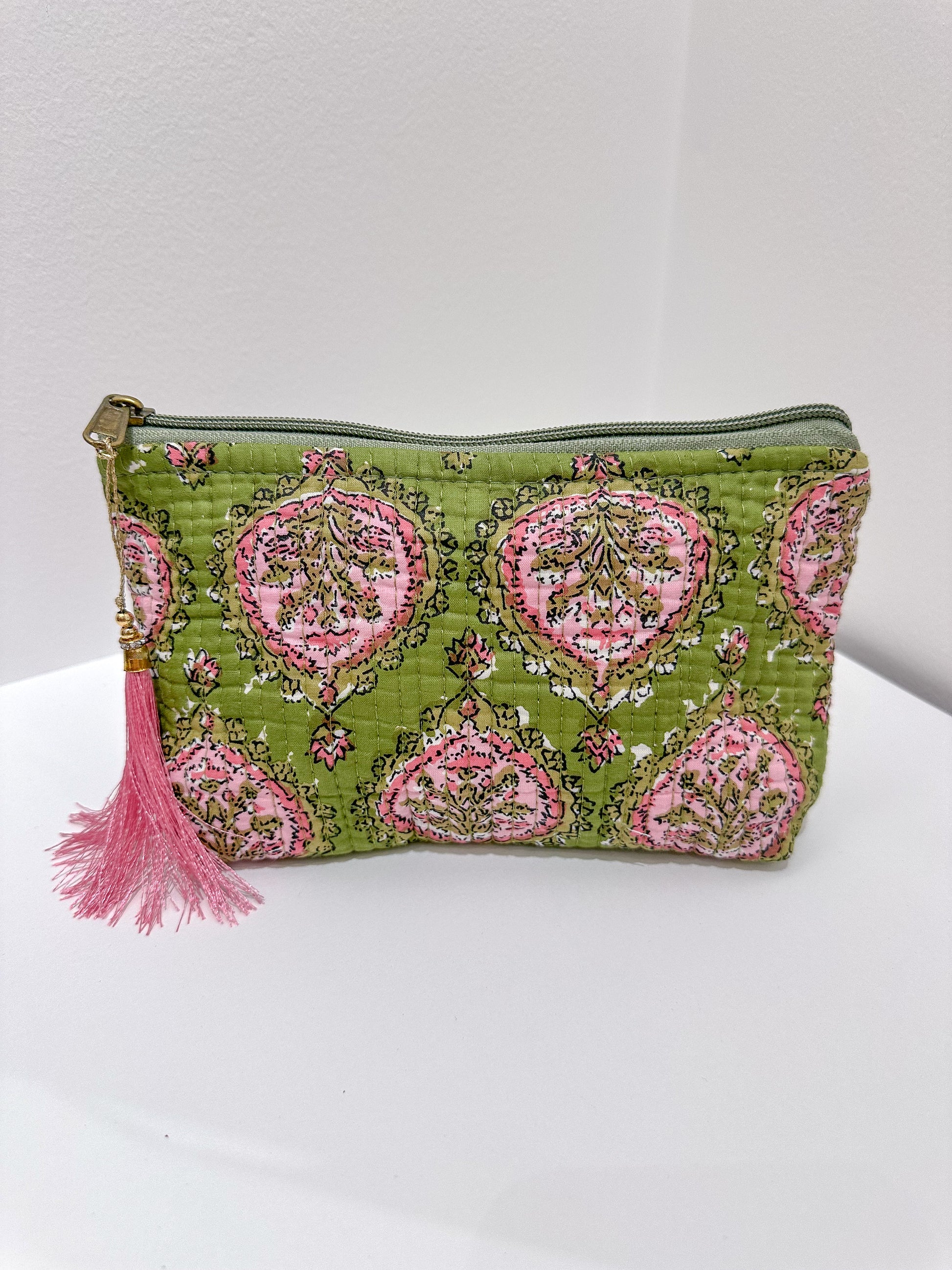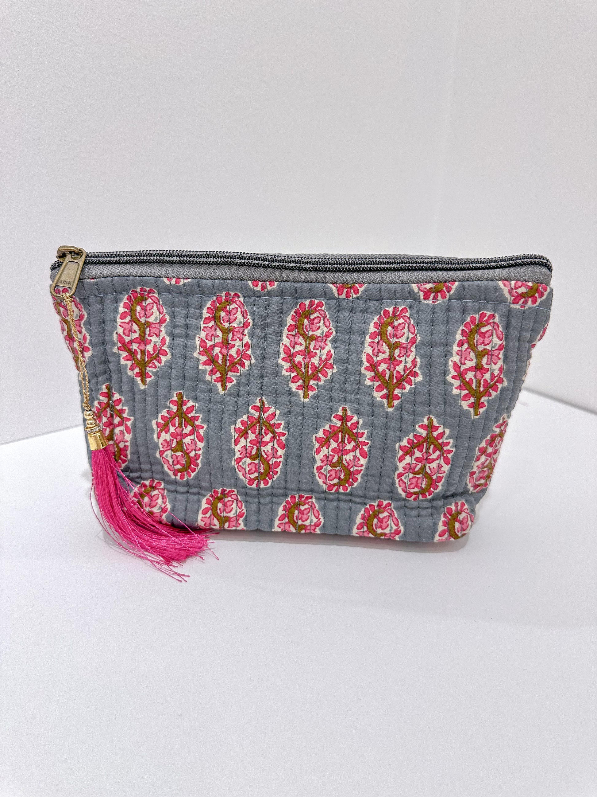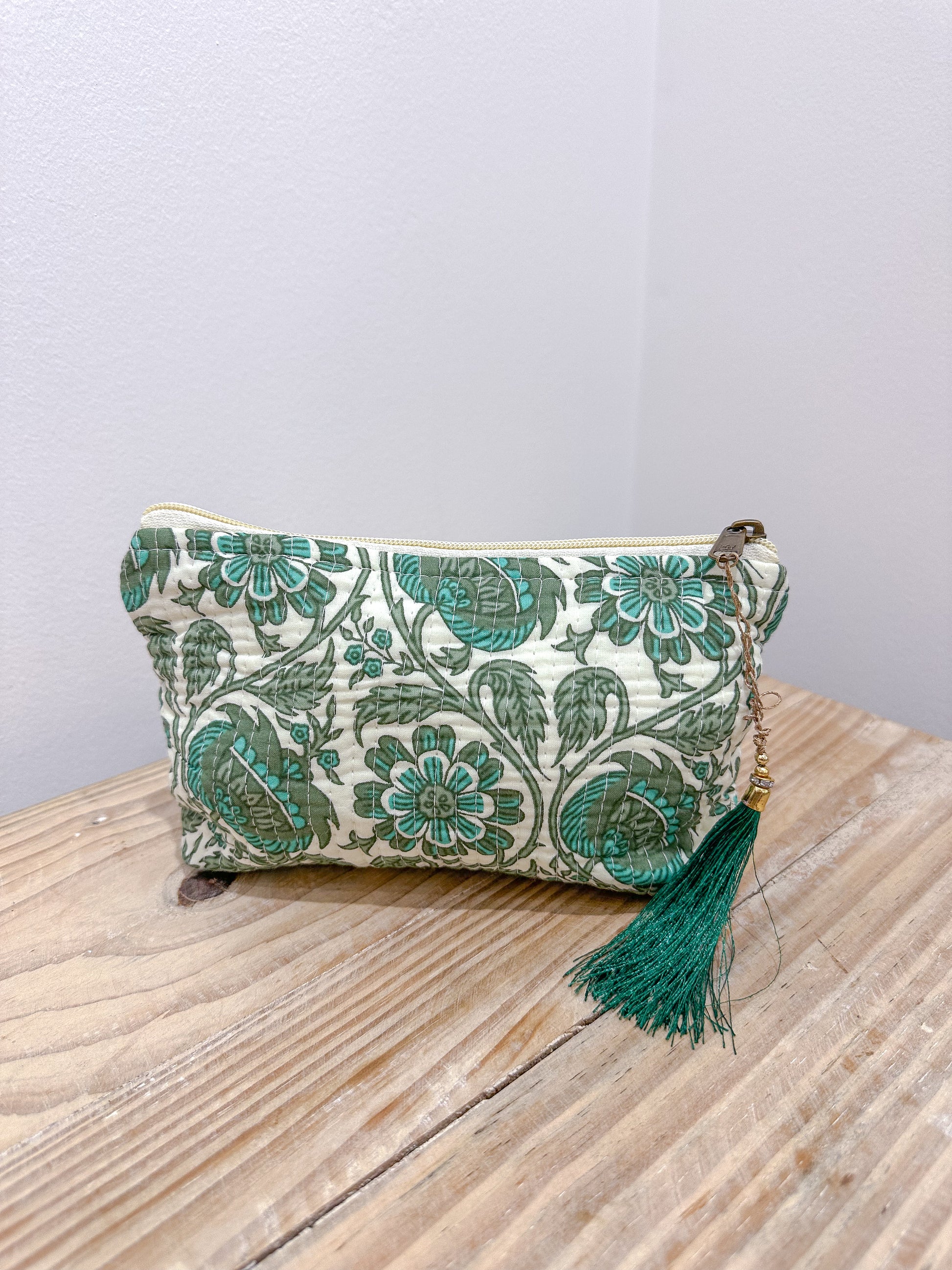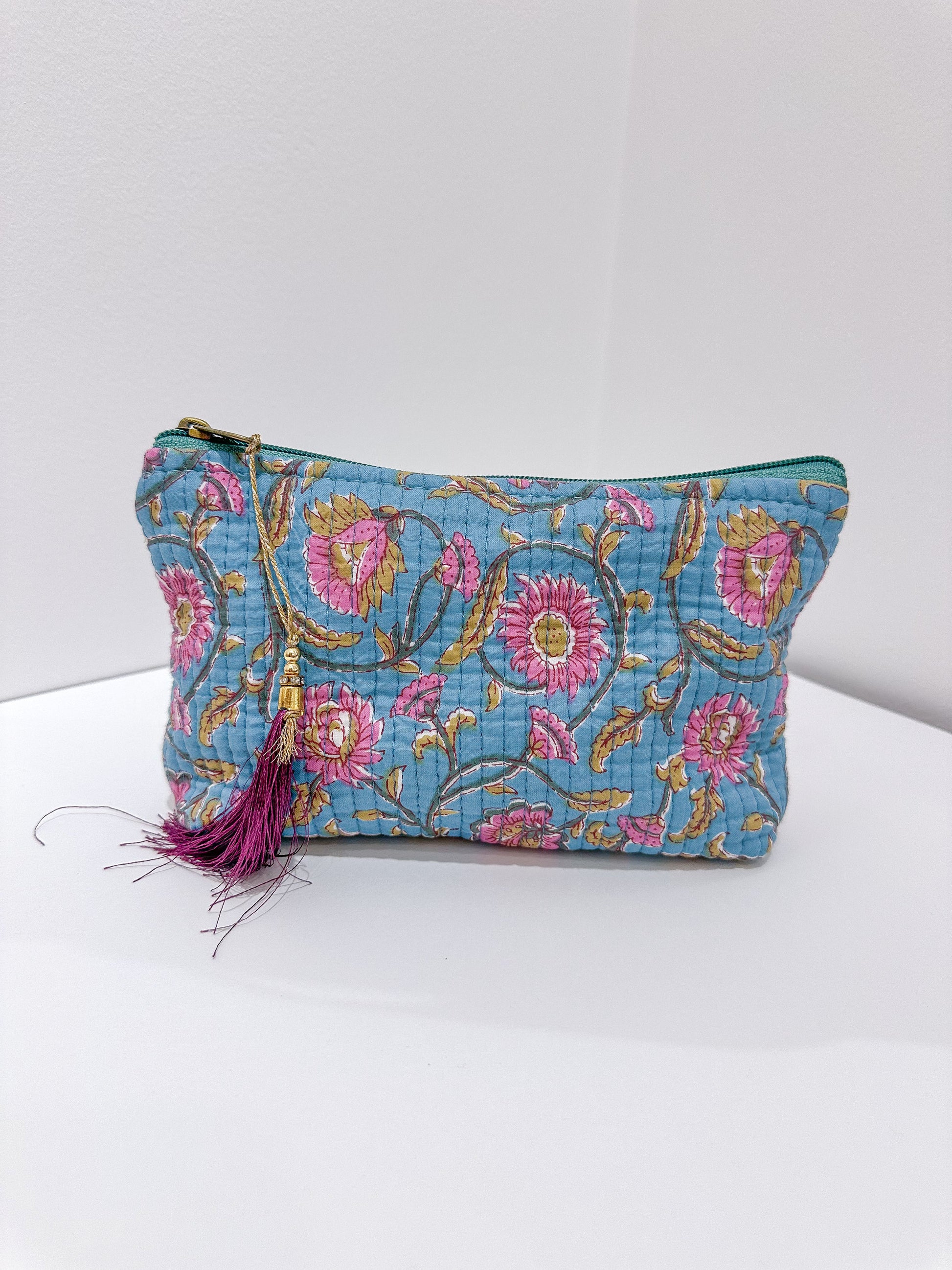 Dale un toque de encanto étnico a tu día a día con nuestro neceser con forma de trapecio y estampado de la India. Hecho a mano y con diseños únicos, reflejo de la autenticidad artesanal.